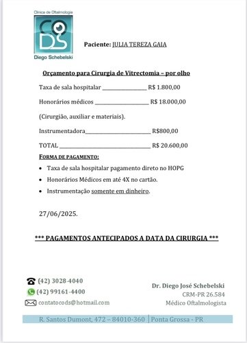 Agora, ela terá que passar por uma nova cirurgia e essa cirurgia vai custar 20,600