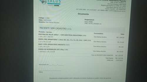 Orçamento cirurgia: