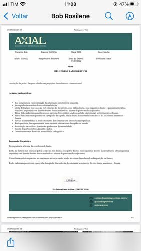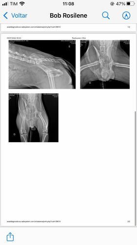 Bom, o Bob está com o quadril extremamente fraturado (conforme laudo disponível), inclusive o quadril dele está virado para o lado, ele precisa realizar um procedimento cirúrgico complexo e vai precisar utilizar placa (conforme foto do orçamento cirúrgico). Todos os custos de consulta e medicação eu consegui custear até agora (comprovantes disponíveis) mas infelizmente eu não consigo custear o valor da cirurgia em tão pouco tempo e peço ajuda de todos, todo valor é extremamente bem-vindo. Me ajudem a salvar a vida do Bob!