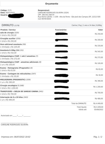 Segue nos arquivos o orçamento da cirurgia e todos os exames ja feito por nós (os de sangue são muitos por isso não coloquei todos). Qualquer dúvida pode entrar em contato pelo celular (12)997098044ELE NÃO PODE ESPERAR ESTAMOS CORRENDO ATRÁS PARA REALIZAR O QUANTO ANTES O PROCEDIMENTO.