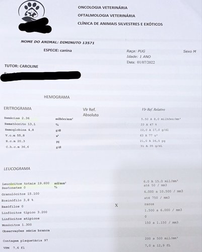 Galera, venho pedir ajuda todos que puderem de alguma forma ajudar o meu pequeno a ser diagnosticado e receber o tratamento correto. Diminuto é um pug branco que ganhei de um canil pois ele já estava com 5 meses e não tinha sido vendido, como todos sabem que eu cuido e não procrio, ele chegou até mim. Ele completou 1 ano em Junho e sempre foi muito ativo, comia bem, brincava como um filhote normal…Por esses meses (maio de 2022), ele teve convulsões e em exames mais específicos (RX, Ultrassom, sangue) constatou que seu fígado e baço estavam aumentados, fora uma infecção altíssima e anemia que constou no exame de sangue. A suspeita era de Linfoma (câncer), doença de Shunt ou leucemia, levamos ele em uma oncologista e a princípio ela havia descartado essa possibilidade podendo ser apenas uma infecção.Entramos com antibiótico e medicação para o fígado, a cada 2 dias ele fazia exames de sangue para ver a evolução e os resultados foram melhores, porém a amenia não melhorou e recentemente ele tornou a ter convulsões.A dra. pediu novos exames e infelizmente apareceu uma massa de 11cm x 7cm no fígado e outra com uma cavidade oca um pouco menor de 3cm x 1cm. Em exame de sangue a anemia piorou e a infecção voltou. Atualmente ele está vivendo uma montanha russa, pois tem dias que ele está bem e tem dias que não. Está medicado e suplementado, tomando antibiótico, remédio para convulsão e dor, fora as vitaminas e alimentação natural com ingredientes que vão auxiliar na melhora. A questão é que ele precisa fazer uma cirurgia para diagnosticar o que realmente está causando tudo isso. Essa cirurgia é muito cara pois precisa de várias amostras e exames específicos (biópsia) para diagnóstico, tbm precisa ser feita para avaliar a condição do fígado e se existe a possibilidade de remover a massa por completo ou não. E ainda tem a questão da anemia que vai necessitar de transfusão. Estamos atados em uma incógnita sem saber o que ele realmente tem e quais as chances de tratamento. Já usamos todos os nossos recursos financeiros com o processo e no momento não temos como arrumar esse valor cirúrgico tão rápido. Peço a todos que puderem ajudar com qualquer valor ou compartilhar para alcançar um número maior de pessoas. Eu agradeço de coração.