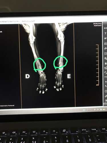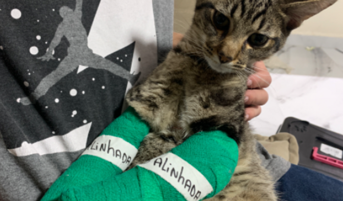 Meu irmão encontrou esse anjinho na rua chorando de dor, trouxe pra casa pra tentar cuidar dele pensando que uma patinha estava quebrada, porém estava miando muito e resolveu levar para o veterinário, chegando lá, foi descoberto que as duas patinhas da frente estavam quebradas. Não temos condições de pagar a cirurgia e pedimos para que nos ajudem. Qualquer valor será muito bem vindo. Muito obrigada. Abaixo vou deixar a imagem do raio X.