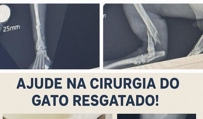 Essa vaquinha é para ajudar na cirurgia de um gato resgatado num predio residencial do Grajaú com as duas patas do lado direito quebradas. Ele precisará passar por cirurgia. Estivemos em varios hospitais publicos e, mesmo nesses hospitais, a cirurgia é paga. E como são dois membros, ficou ainda mais cara. Precisamos da ajuda de vcs para salvar essa vida. Todas as contas serão prestadas com as devidas notas fiscais. Nos ajudem!