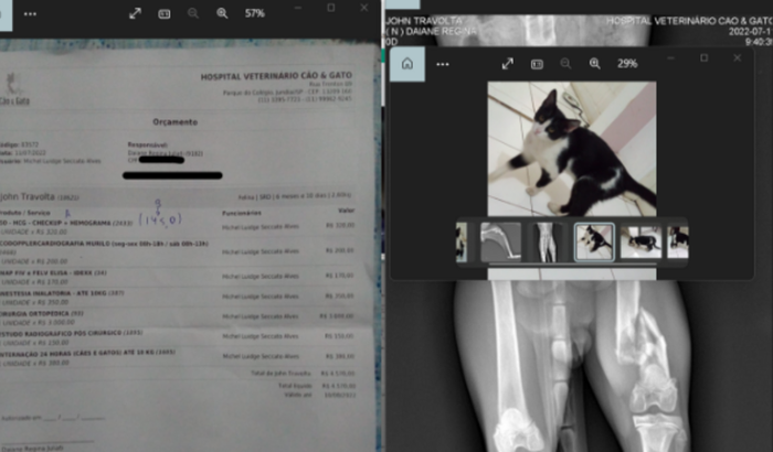 Ontem tive uma surpresa ao abri a porta de casa , uma criaturinha surgiu no jardim , um gatinho macho filhote. Infelizmente notamos que ele estava com a perna quebrada. Tentei achar o dono , mas acredito que fugiu ou foi abandonado. Realizei o resgate e levei no veterinário. A única opção e cirurgia pois foi uma fratura grande e pelos exame ja foi a um tempo a fratura causando calcificação no osso. Estou tentando fazer uma vaquinha para ajudar nos gastos , para Salvar a vida deste gatinho que so tem 6 meses e após cirurgia tem grande chance de ter uma vida feliz e saudável em um lar seguro.