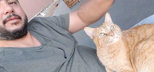 Senti uma arranhada, ou diria uma agarrada nas pernas - eu estava de calça jeans, menos pior - e quando olhei para baixo, eu já estava apaixonado!!! Costumo dizer que foi amor à primeira arranhada!
