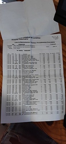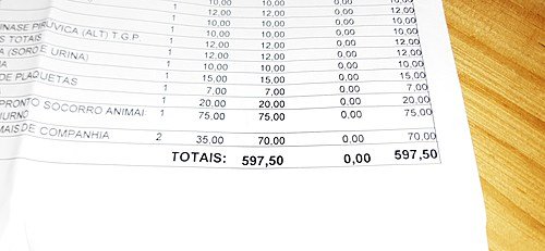 Às pressas, levamos para o Hospital Veterinário da UEL (Universidade Estadual de Londrina) para desobstrução do canal urinário e, para nossa surpresa, o valor ficou em R$ 597,50 (exames, aparelhos de desobstrução, internação, custas médicas e todo o mais).