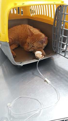 Após algum tempo aconteceu um probleminha - na verdade um problemão - e que eu viria a saber depois que é mais comum em gatos de cor amarela castrados e que se instaurou no Juninho: a famosa obstrução urinária.