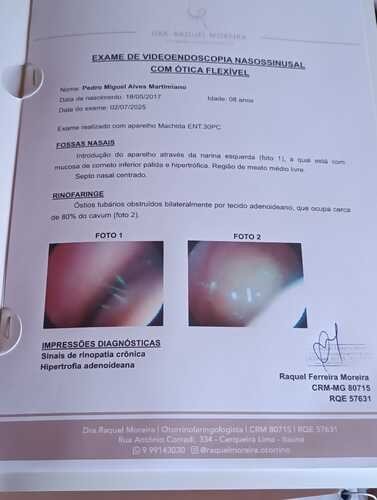 O Pedro nasceu com algumas dificuldades respiratórias e recentemente foi diagnosticado com hipertrofia adenoideana e rinopatia crônica, conforme exame médico anexo. Ele precisa passar por uma cirurgia para recuperar a respiração adequada e ter mais qualidade de vida.