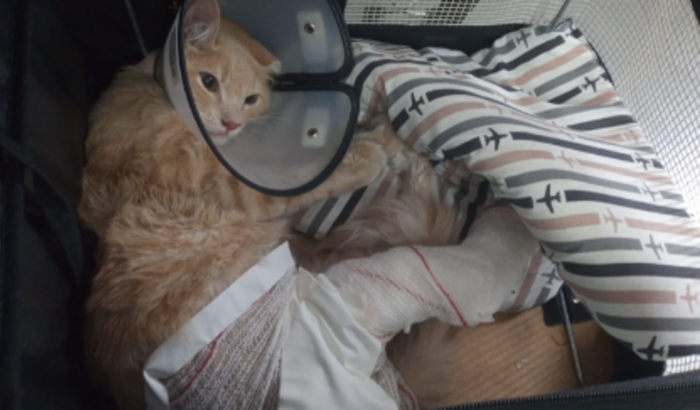 Corri para o veterinário e realizei exames iniciais como raiox e ultrassom, e foi comfirmado que ele fraturou o Fêmur e a Tibia, os orgãos estão 'ok".