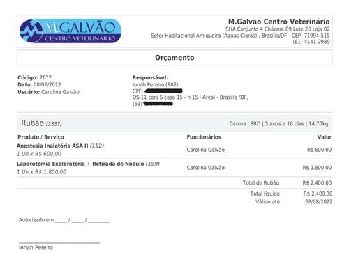 Resolvemos fazer essa vaquinha pra pagar a cirúrgia porque já tivemos outros gastos com exames, internação e bolsa de sangue.