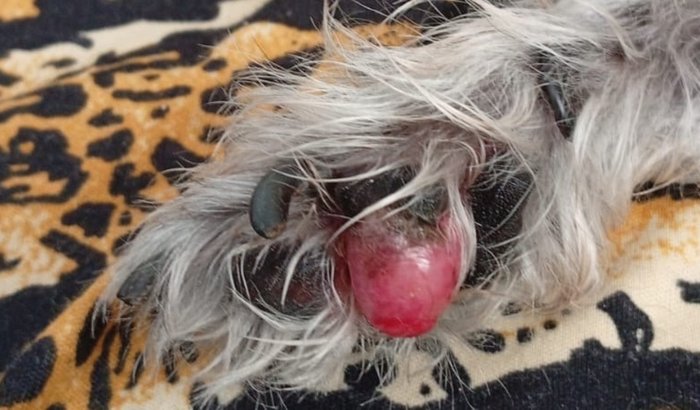 Tudo começou com uma pequena bolha na minha patinha. A gente achou que não era nada sério, mas ela acabou estourando… e depois disso cresceu muito rapido. Em pouco tempo, comecei a sentir muita dor e já não conseguia andar direito.