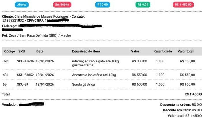 Zeus apresentou um quadro de icterícia no dia 10/01/2026, levamos ao veterinário para realizar exames e nos exames consta alteração no fígado e na vesícula. Pra realizar o tratamento, precisamos da colocação de sonda esofágica, pra que os m ver tudo