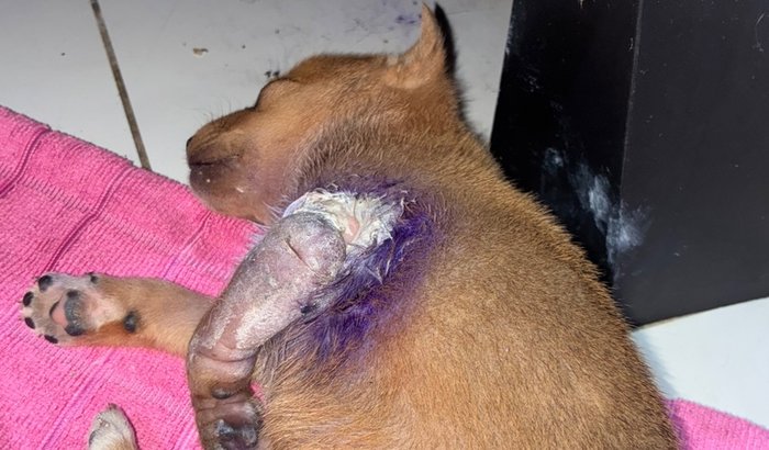 Eu sou de Santa Rita achei esse filhote jogado no lixo , com a pata quase destruída está quebrada, ele deve ter aproximadamente 2 meses muito choroso , fiz no intuito de ajudar com os custos veterinário do animalzinho qualquer quantia é bem ver tudo