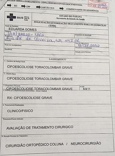 Em 2018 fui diagnosticada com cifoescoliose toracolombar grave, na época com curva em 43º por indicação médica usei o colete milwaukee durante um ano o qual não teve resultado. Minha família tentou outros profissionais, fiz RPG e pilates, porém a curva da escoliose continua aumentando sendo necessário realizar cirurgia.