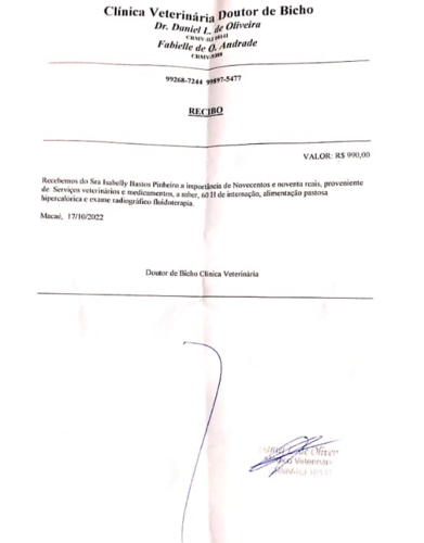 2. Recibo da internação e raio-x prévia