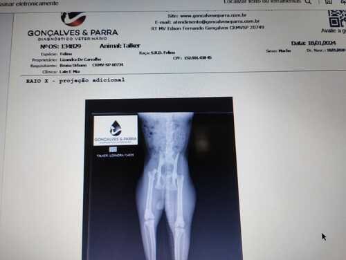 Por humanidade, mesmo sem condições, o levei ao veterinário para uma consulta e para fazer um Raio-X, e foi identificado que ele está com uma lesão coxofemoral, que necessitará de cirurgia ortopédica para correção, além de exames, medicamentos e de um lar temporário pago para poder se recuperar adequadamente.