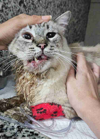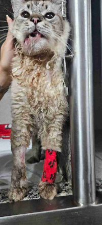 Olá! Me chamo Edna, e sou dona desse gatinho que vocês estão vendo. O Theo é muito dócil e na dele, não costuma sair de casa, mas na última terça-feira, 23/04, ele saiu para tomar um sol na calçada de casa e infelizmente, havia um cão da raça Pitbull, sem coleira e os cuidados necessários para um cão deste porte.