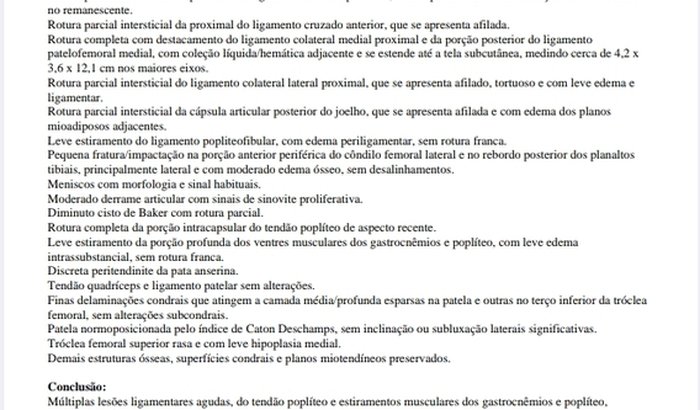 Tenho o laudo da ressonância em mãos, para quem quiser ver a veracidade é só me chamar no Instagram o perfil está como Tiago Monareta, peço a ajuda pela vaquinha pois já corri atrás do que pude pra fazer pelo SUS mas infelizmente sem êxito! Desde já agradeço a todos