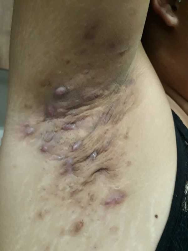 As lesões podem ser muito dolorosas e a constante eliminação de pus pode causar mau odor e manchar as roupas. Já as cicatrizes podem dificultar a movimentação dos braços e coxas, por exemplo. Raramente, lesões muito antigas e persistentemente inflamadas podem levar ao surgimento de neoplasias malignas. Lesões crônicas associadas a cicatrizes, frequentemente, precisam ser tratadas cirurgicamente e, em casos mais graves, podem ser utilizados medicamentos imunossupressores.AGRADEÇO À TODOS QUE ESTA ME AJUDANDO COM ORAÇÕES , COM O VALOR E COMPARTILHANDO MEU LINK QUE DEUS ABENÇOE A VIDA DE CADA UM!!!