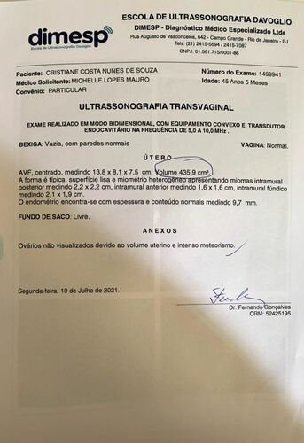 Meu nome é Cristiane Costa, tenho 45 anos e sou moradora de Campo Grande - Rio de Janeiro. Fui diagnosticada com mioma uterino em 2018 até o momento eu estava fazendo o tratamento do mesmo com o uso contínuo de anticoncepcional, que era usado para o controle de sangramento e cólicas menstruais. Infelizmente como mostra na ultrassonografia eu possuo miomas intramural, meu útero está 4 vezes maior que o normal, estou tento hemorragia frequentemente, o que acabou provocando uma anemia e minha taxa de hemoglobina está 8,00 g/dL muito baixo e preocupante, pois caso não seja tratada a mesma pode se tornar uma leucemia.Eu já estou na fila do SUS para realizar a cirurgia, porém sabemos que isso pode levar anos e anos para que eu seja chamada para finalmente realizar a cirurgia de retirada dos miomas, no cenário atual em que me encontro bem fraca devido à anemia eu não posso esperar anos para a realização da cirurgia, com isso venho através dessa vaquinha pedir a ajuda de vocês para que eu consiga realizar esta cirurgia o mais rápido possível pelo hospital particular, eu fiz uma pesquisa e o lugar onde essa cirurgia é mais em conta é na Casa de saúde N.S Aparecida, que fica localizada em Paracambi, porém antes de realizar a cirurgia eu precisarei tratar a anemia, o que irá gerar mais custos, pois eu terei que fazer um tratamento com um médico especialista em hematologia. Fiz uma estimativa dos custos e aproximadamente precisarei do valor de R$: 10.000 reais.