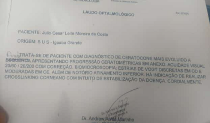 Eu sou julio Cezar acabei de fazer 18 anos e a um tempo venho fazendo tratamento acurar do ceratocone, e recentemente descobri que tenho a fazer uma cirurgia de emergência para não perder a visão!