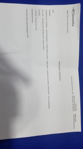 Olá! Estou organizando esta vaquinha para a cirurgia da minha mãe dona Maria, ela está somente com 1% de visão no olho esquerdo e 50% no olho direito, a cirurgia é para o olho esquerdo. Será realizado 2 cirurgia 1 de catarata e 1 de vitrectomia (vvpp) pois ela teve o derrame ocular por conta da diabetes.