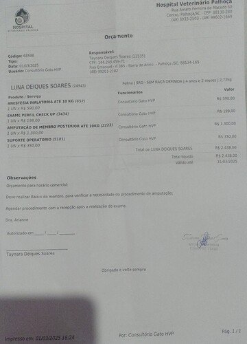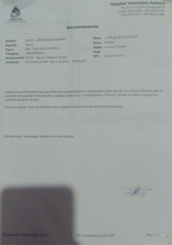 Oi eu sou a Tainara e criei essa vaquinha pois preciso arrecadar 3.000para a cirurgia da minha gatinha luna que um cachorro ou alguém maldoso machucou ela pois está com o osso da patinha exposto e quebrado, precisando de sua ajuda, qualquer valor e bem vindo e que Deus te dê em dobro.