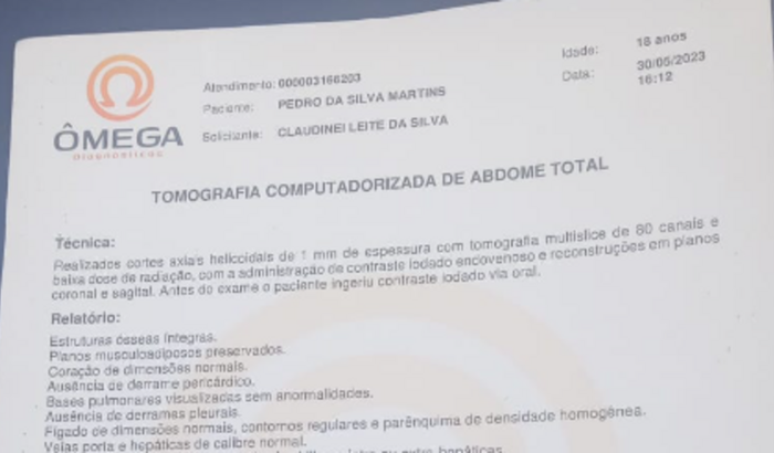 Pedro, sentiu dor nas costa, foi ao médico e fez uma tomografia, descobriu um tumor na coluna e outro entre a bexiga e o intestino, o médico pediu a cirurgia, que custa R$30.000,00 + R$2.500,00 para o exame, total 32.500,00.