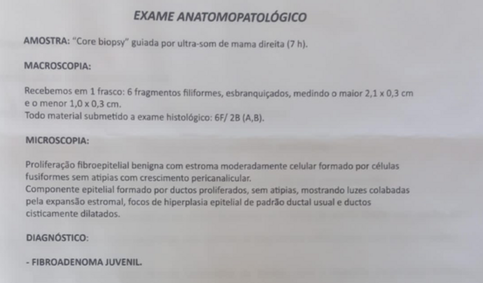 Olá, me chamo Tamires Moraes e tenho uma filha de 14 anos que andava sentindo muitas dores nos seios, procuramos um médico e ela fez alguns exames, inclusive uma biópsia, onde foi diagnosticado um tumor fibroadenoma juvenil e ela precisa fazer uma cirurgia para retirar esse tumor e reconstruir a mama. Se você puder nos ajudar, ficaremos imensamente gratos.