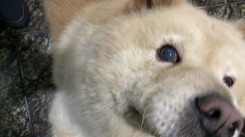 Essa é uma foto do olhinho direito dele já durante o tratamento :(