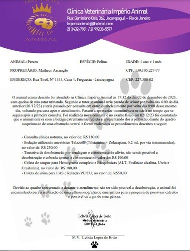 Olá, pessoal!Para quem não me conhece eu sou o Matheus e o carinha da foto abaixo é o Perseu, meu gato. Perseu teve alguns problemas de saúde precisando passar por alguns procedimentos como cistocentese (retirada de urina direto da bexiga), ultrassonografia, desobstrução urinária (realizada 2 vezes), anestesia (realizada 2 vezes) e internação onde ele ainda está.Perseu teve que ir a diferentes clínicas veterinárias até a última que é onde ele se encontra internado. Nossos custos foram bem altos, e portanto, qualquer ajuda será bem vinda. Os custos e a meta estão sendo baseados apenas nos gastos do veterinário, como internação e procedimentos.
