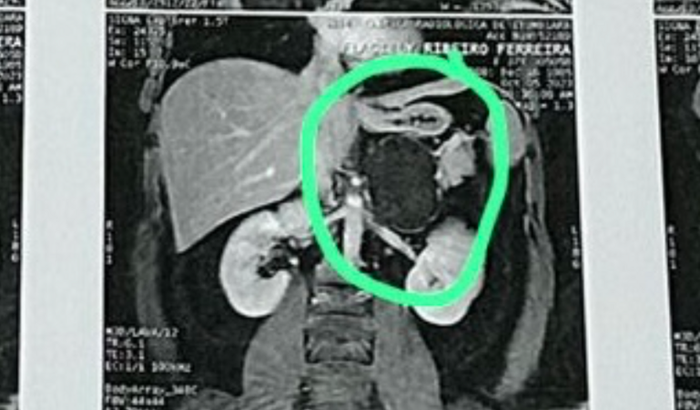 A poucos meses, minha mãe descobriu um tumor no retroperitônio. Se trata de um cisto de 8cm, na região abdominal (o que o torna raro), que aparentemente, possui algumas pequenas massas sólidas.