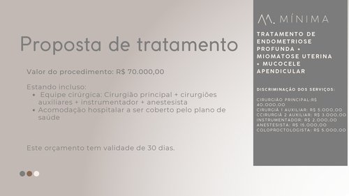 Abaixo, você encontrará os laudos médicos e imagens dos exames que comprovam o meu diagnóstico, bem como o orçamento detalhado da cirurgia. Se tiver alguma dúvida, estarei à disposição para fornecer mais informações.