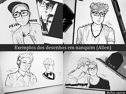 ✒️ Exemplos dos desenhos autorais em nanquim, ao invés do sombreamento em nanquim preto & branco pode ser feito uma coloração básica digital (flat colors, sem sombreamento):