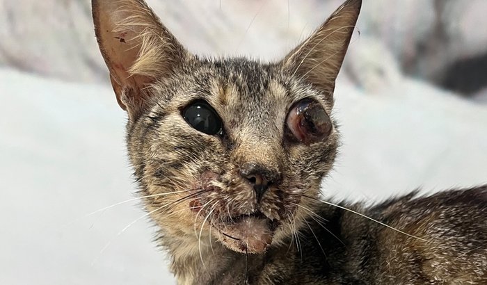 A Serena foi encontrada com o rostinho muito machucado, o olhinho comprometido e fraturas na mandíbula e crânio.Suspeitamos que ela tenha sido espancada, mas mesmo assim ela segue lutando com muita força.