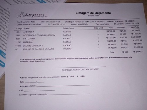 O orçamento ficou muito alto e nós não temos condições de arcar com esse custo.