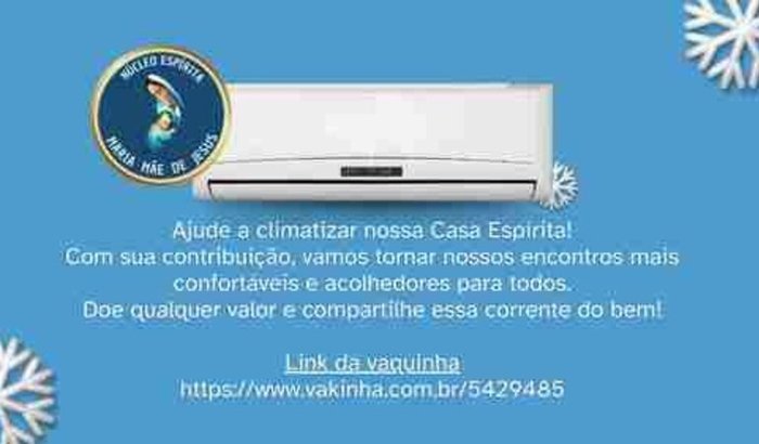 Lançamos essa vaquinha solidária com o objetivo de climatizar os ambientes do Núcleo Espírita Maria Mãe de Jesus, garantindo bem-estar tanto para os trabalhadores quanto para os frequentadores, inclusive idosos e crianças.