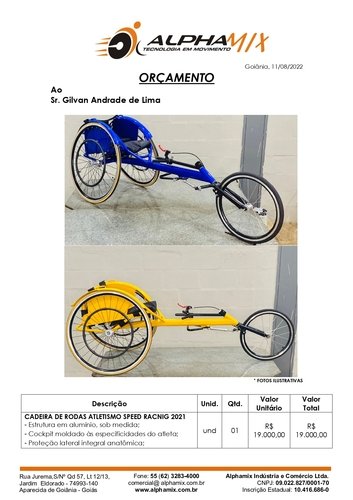 Fiz essa vaquinha pois preciso adquirir uma cadeira de rodas específica para participar de competições no paradesporto, sendo esta a CADEIRA DE RODAS ATLETISMO SPEED RACNIG 2021, com valor de R$ 19.000,00 (dezenove mil reais).