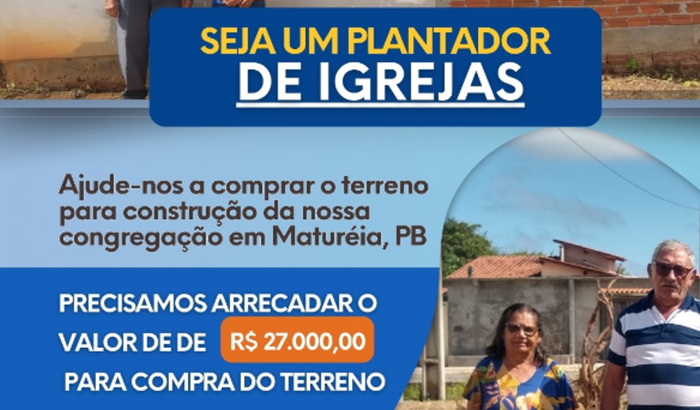 Somos da Igreja Batista Independente Getsemani, precisamos do terreno para construção da nossa sede para apoio social e espiritual para a comunidade na cidade de Matureia/PB, sertão da Paraiba.