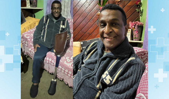 Peguei COVID em julho de 2021, e por consequência tive uma Trombose na perna esquerda. Para sobreviver , a perna foi amputada. Nestes dois últimos anos, venho lutando como posso e aceitando minha nova condição, pois estou feliz por estar vivo. Meu acompanhamento é pelo SUS, e iniciei a fisioterapia em janeiro deste ano 2023 para meu corpo ganhar força e poder usar a prótese da perna já cedida pelo SUS. Reaprender a andar.