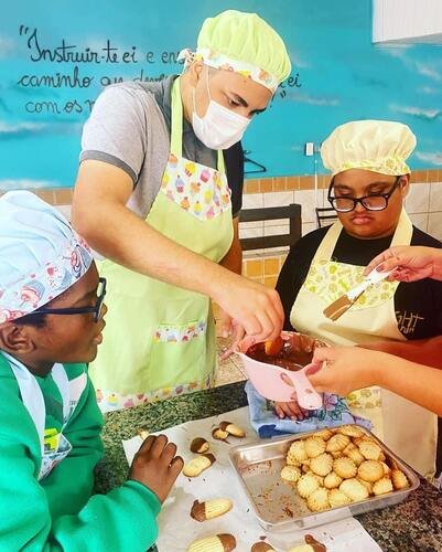 Eu sou a Pastora Andréa, temos uma associação que cuida de mulheres e crianças da nossa comunidade em Cidade Tiradentes. Não temos patrocínio nenhum e precisamos tirar nossas crianças da rua. Nossa finalidade é trazer o olhar dessas crianças para um mundo sem crime ou drogas. Elas amam cozinhar e interagir através da música! Também trazemos musicoterapia onde nossas crianças têm um momento de cultura e recreação. Trabalhamos também a culinária para as crianças autistas desenvolvendo foco, atenção e paciência. Ao final de cada oficina oferecemos um almoço bem gostoso para que cada criança sinta-se feliz e amada.