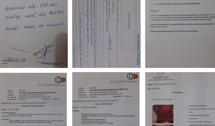 Meu nome é Victoria, tenho 23 anos, fui diagnosticada pelo Exame Citopatológico = Lesão Intraepitelial grau (HSIL). E pelo Exame Anatomopatológico Material: colo uterino. Conclusão: LESÃO INTRAEPITELIAL ESCAMOSA DE ALTO GRAU COM FOCO SUSPEITO, PORÉM NÃO CONCLUSIVO, DE INVASÃO ESTROMAL. Necessitando de uma Colonização Uterina, pois a lesão é de alto grau, sendo a de grau III. Quanto mais tempo levar a retirada para biópsia, mais a lesão tem a de se espalhar pelo útero, sendo assim, a dificuldade de ter um filho um dia aumenta as chances. Pelo SUS minha cirurgia estava marcada para o dia 07 de março de 2021, após a bandeira preta, foi cancelada não só a minha mas de muitos que necessitam e não tem condições financeiras. Sem previsão, irei recorrer a cirurgia particular que sai entorno de R$ 4.400,00 no Hospital Clinicanp Pelotas RS.