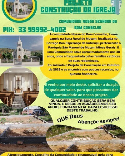 Eu sou Laudicéia Mária de Oliveira, criei esta vaquinha pra arrecadar dinheiro pra a construção da igreja Ccatólica Nossa Sanhora do Bom Conselho. Ajude-nos ver tudo