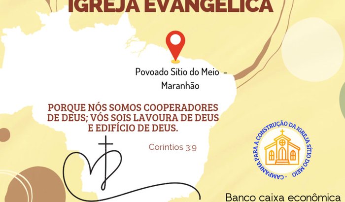 Virmos através desta campanha solidarizar com irmão em Cristo, Diácono Juciel Lima, membro da Assembléia de Deus - Remanescentes em Cristo, na cidade de Mauá/SP,que tem amor em servir ao Senhor, planejando implantar em sua terra natal inicialmente uma Igreja no Povoado Sítio do Meio no Estado do Maranhão para apregoar as boas novas do Evangelho de Cristo,para uma população carente e necessitada de tudo , inclusive do Amor de Deus. O irmão Juciel tem parentela na região em questão, e, já semeou e pantlou a semente por lá. Cremos que a Terra é fértil, e você pode nos abençoar com esse cultivo do Reino de Deus, Aleluia! Seja um canal de Deus, de bençãos, para que esse povo possa vir desfrutar das bençãos celestiais nesta vida e na vindoura. ❤️
