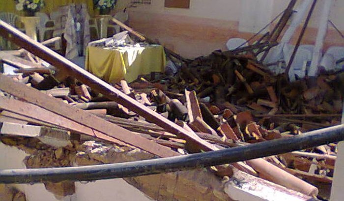 Vista - SGA/RN: o teto do templo desabou, de modo que foi preciso derrubar o restante do