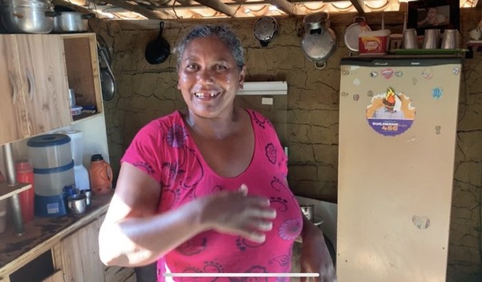 sem espaço na sua pequena casa ela sonha em construir uma casa maior, mas não tem condições para construi-la.
