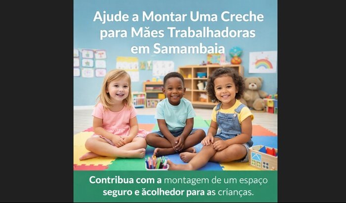 Neste momento, estou montando a estrutura inicial da creche e preciso de recursos para comprar móveis infantis, colchonetes, tatames, brinquedos educativos, utensílios de cozinha e materiais básicos para o funcionamento.