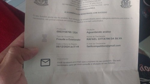 Segue foto do time, B.O registrado e dados do insta para vocês conferirem melhor.