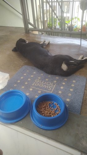 hoje de manhã eu fui dar uma volta com ele e uma cachorra de rua que eu já tinha visto antes veio até mim e ficou me seguindo e passeou com a gente, voltei com ela para casa, dei comida, água e banho nela e eu vou cuidar dela, agora ela é da família também.