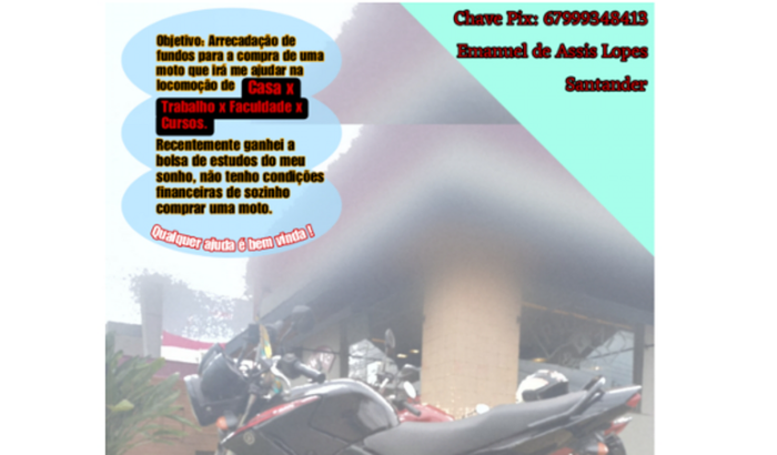 Preciso de uma moto UGENTEMENTE para me locomover de CASA X TRABALHO X FACULDADE X CURSOS.